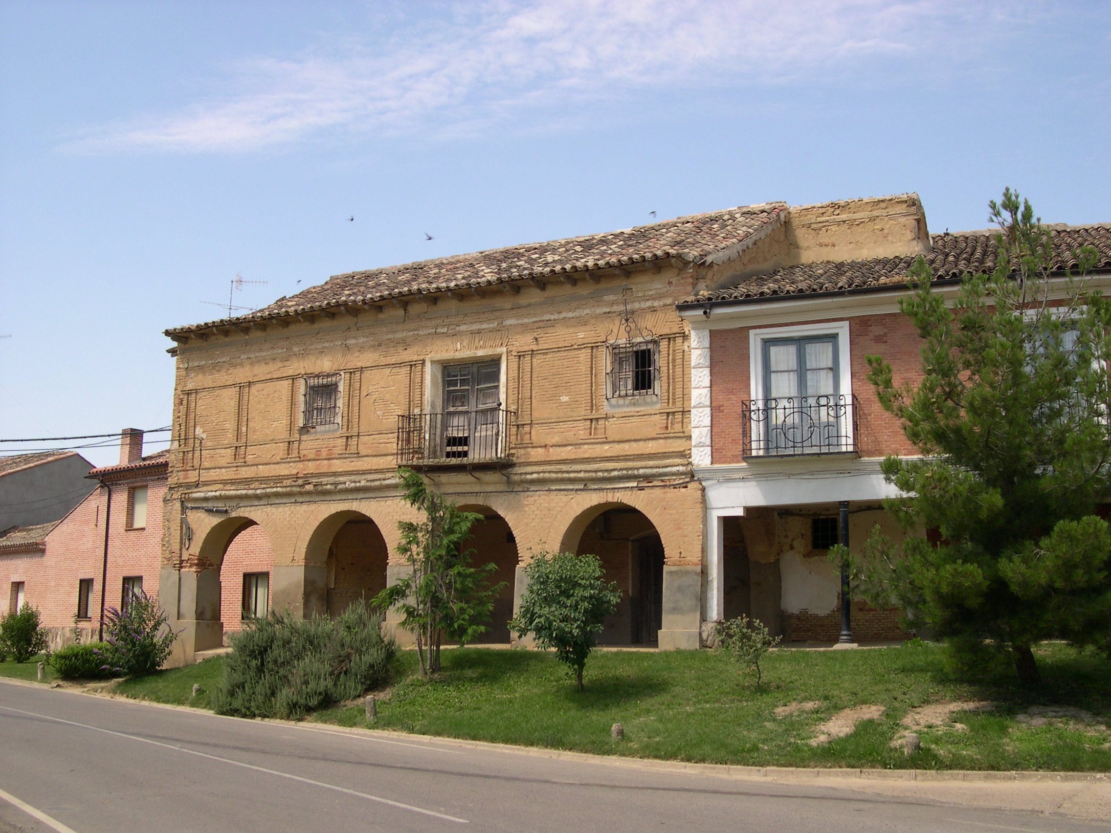 Imagen 1. Vivienda con fachada de ladrillo balcones. Imagen 2. Vivienda construida en tierra y ladrillo. Imagen 3. Vivienda con fachada de ladrillo y decorada con molduras. Imagen 4. Vista del pueblo desde la torre de la iglesia de San Justo. Imagen 5. Portada de acceso de una vivienda. Imagen 6. Aspecto exterior de la torre de la iglesia de San Justo. Imagen 7. Vista del pueblo desde la torre de la iglesia de San Justo. Imagen 8. Vista del pueblo a través de un arco de la torre de la iglesia de San Justo.